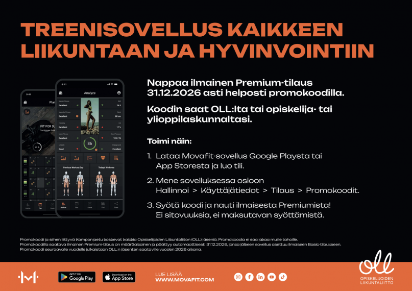 Nappaa ilmainen Premium-tilaus 31.12.2026 asti helposti promokoodilla. Koodin saat OLL:lta täyttämällä alla olevan lomakkeen tai opiskelija- tai ylioppilaskunnaltasi.