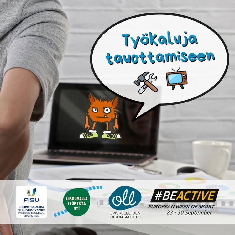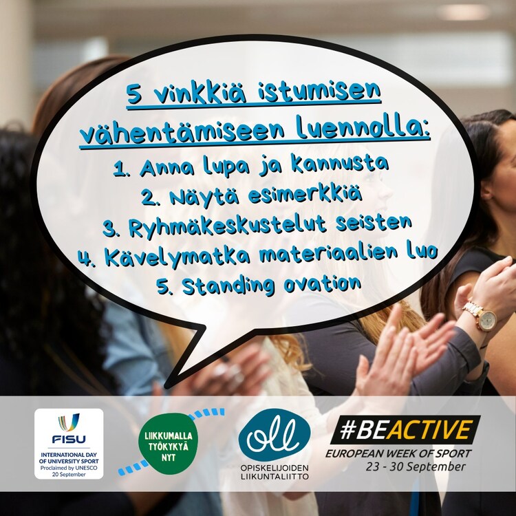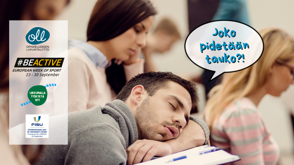 This year, the Finnish Student Sports Federation OLL’s annual #BeActive weeks 22.9–3.10 aim to get people to pay attention to taking breaks from sitting while studying. Moving your body while studying improves the ability to study, but students still sit 10.5 hours per day.